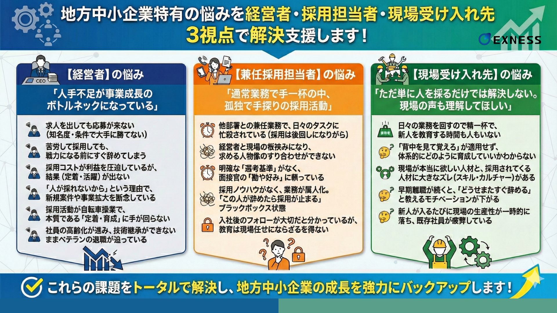 エクネス RPO 概要+価格コミ 公開日:2025年12月8日 この記事を書いている人 北川翔也 HR(採用・人材育成)チーム マネージャー 上場企業に入社後、価値観合わず退職。その後、2社目は全国を飛び回る営業もしながら採用責任者として二足のわらじで活動。採用業務に注力したい思いでエクネスに入社。 プライベートでは親子キッチンや学生交流会等団体を設立し、 学生がより良い就活ができる支援をしている 執筆記事一覧 投稿ナビゲーション 採用代行(RPO)事業、始めます
